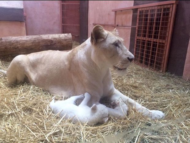 В одном из частных зоопарков под Киевом пополнение: там родилось сразу 5 редких белых львят. Среди новорожденных одни самцы.